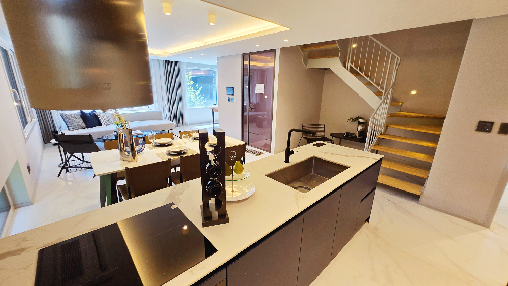 양주옥정 라피아노 스위첸의 모든 세대는 복층 구조를 갖추고 있어요. 덕분에 층간 소음 걱정이 줄고, 실사용 면적이 전용 84㎡보다 훨씬 넓게 느껴져요. 실제 체감 면적은 약 170㎡ 이상으로, 일반 아파트에서 느끼기 어려운 개방감과 여유로움을 누릴 수 있죠.