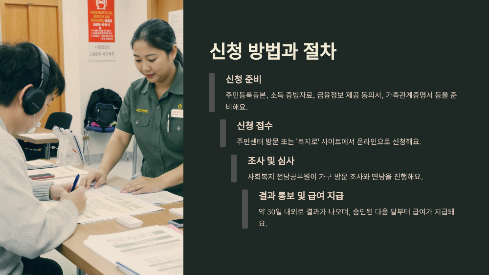 인터넷으로도 쉽게 신청할 수 있지만, 방문 접수 시 더 자세한 상담과 안내를 받을 수 있어서 처음이라면 주민센터를 추천해요.