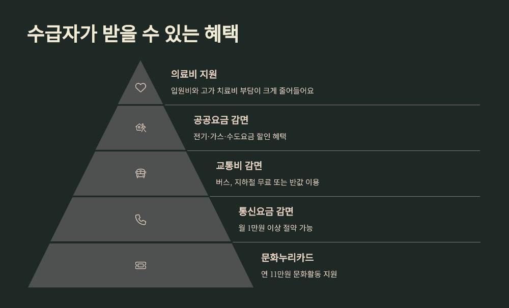 기초생활수급자가 되면 금전적인 지원 외에도 다양한 실질적 혜택을 받을 수 있어요. 생각보다 폭넓고 실속 있는 지원들이 많아서 알아두면 큰 도움이 돼요.